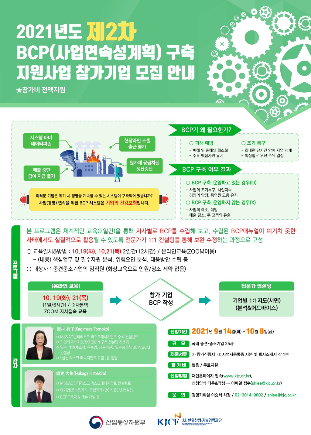 「2021년도 제2차 BCP구축 지원사업」 참가기업 모집