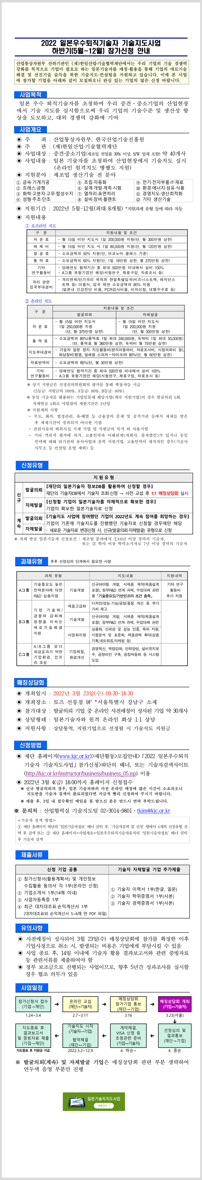 「2022 일본우수퇴직기술자 기술지도사업 하반기(5월~12월) 」 참가신청 안내