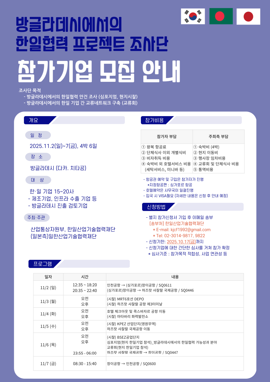 「방글라데시에서의 한일협력 프로젝트 조사단」 참가기업 모집 안내